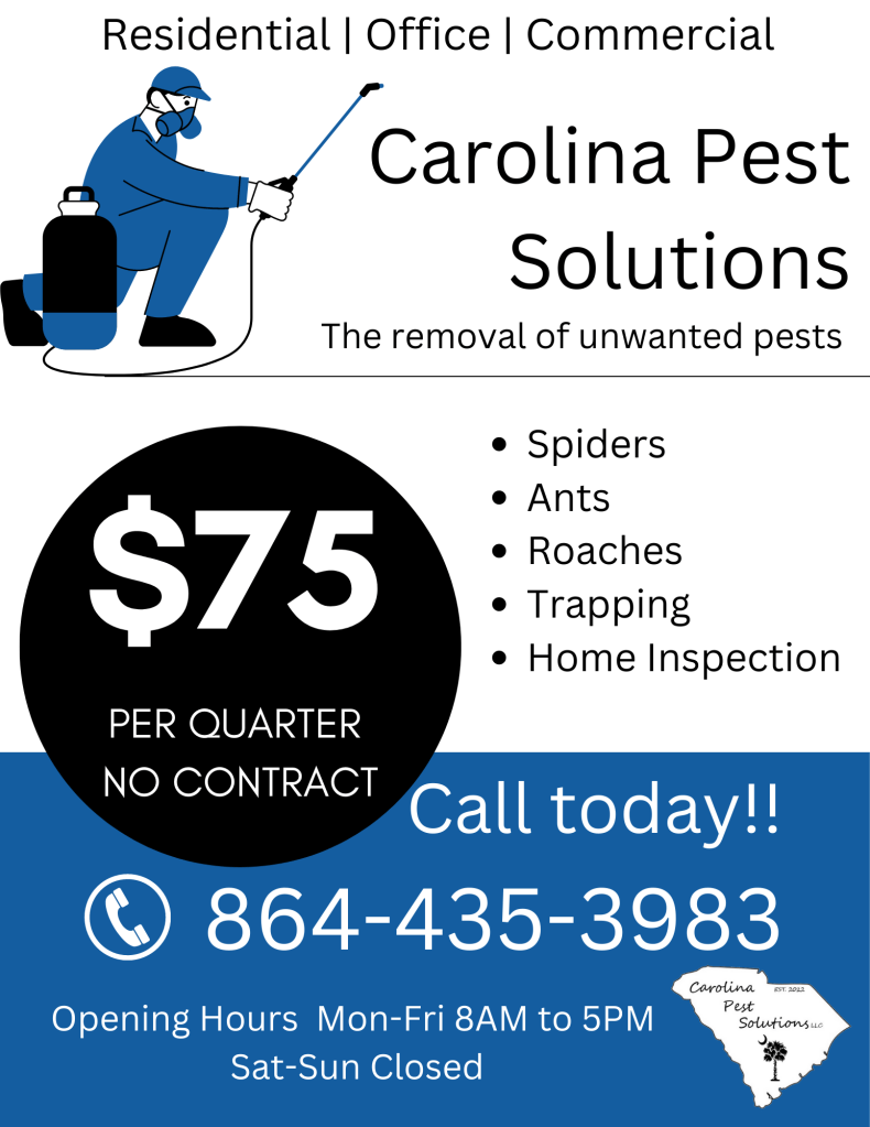 This ad I created for Carolina Pest Solutions promotes their new service bundle, which combines pest control and lawn care. The design emphasizes the convenience and value of the bundled services, offering customers a comprehensive solution for both pest management and lawn maintenance.