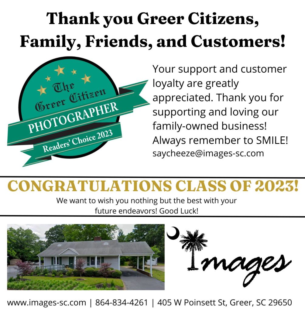 Images, Inc. was honored with the Reader’s Choice award for Best Photographer, and this advertisement was featured in The Greer Citizen to celebrate the achievement. The ad highlights the recognition, showcasing their excellence in photography and reinforcing their reputation as the top choice in the community.