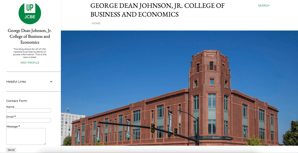 My first major project at the George Dean Johnson, Jr. College of Business and Economics was to redesign the student email campaign. I decided to create a blog and revamp the traditional email format. This approach gave students the flexibility to choose what they wanted to read, explore images, and discover opportunities for greater involvement. The new format was well-received by faculty, staff, and students, who appreciated the fresh, easily accessible information the blog provided.